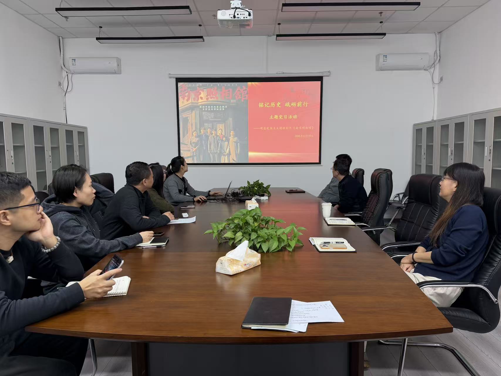 为深入学习贯彻习近平新时代中国特色社会主义思想,纪念中国人民抗日战争暨世界反法西斯战争胜利80周年,北京国文信文物保护有限公司党支部于12月19日开展“铭记历史 砥砺前行”主题党日活动,组织全体党员及员工观看爱国主义影片《南京照相馆》,此次活动旨在以影片为载体,激发同志们的家国情怀和“铭记历史 砥砺前行”的精神信念。