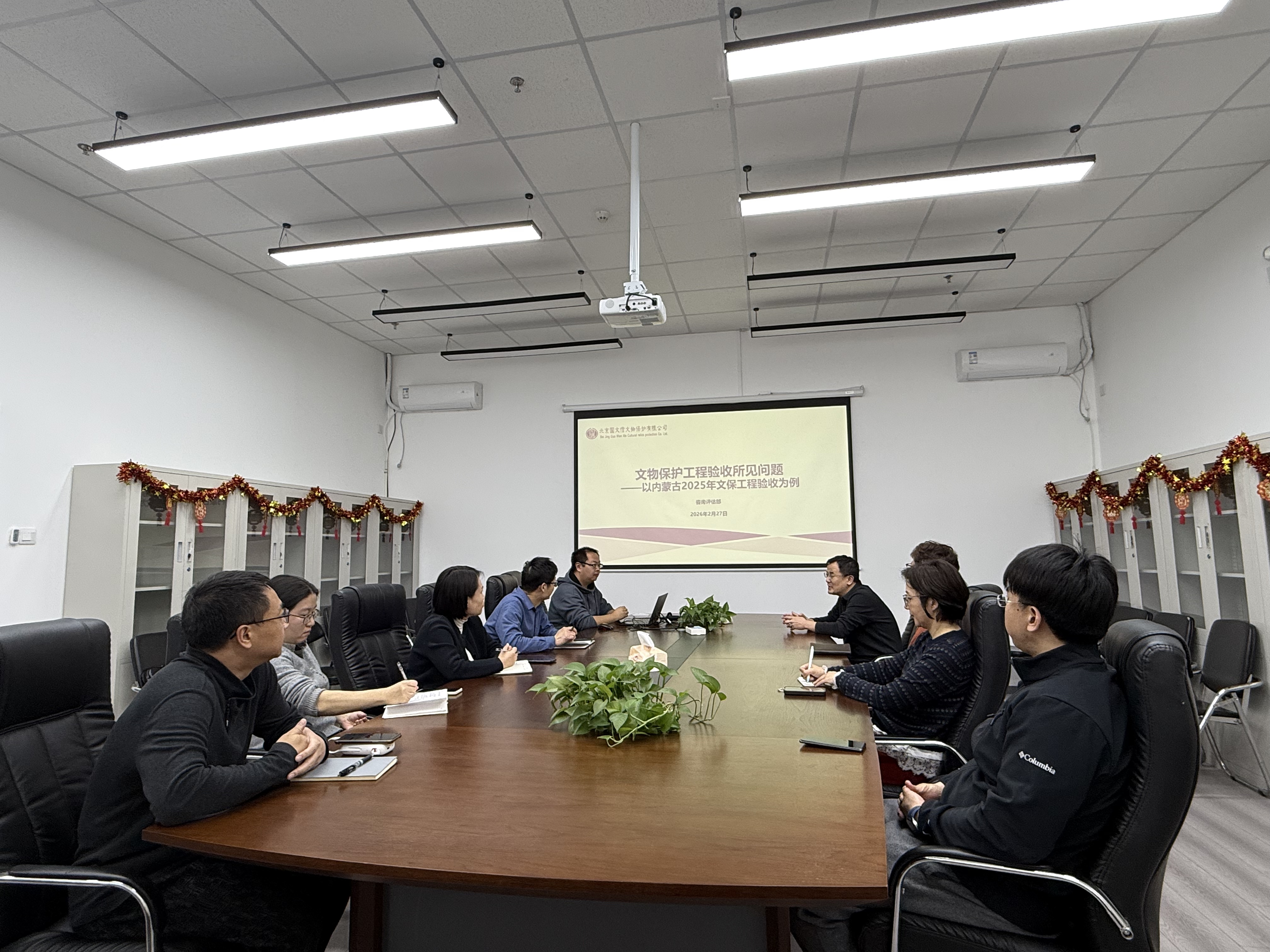 本次分享首先梳理了文物保护工程实施流程和竣工验收相关法律法规,以2025年公司承接的内蒙古地区文物保护工程竣工验收工作为例,从工程审批与验收管理、工程质量与效果、工程档案与资料三个方面,就验收现场发现的各种问题进行了案例分析和解读,并结合公司业务实际分享了相关经验和体会。分享结束后,各部门就文保工程方案设计及验收等相关问题开展了积极且广泛的探讨与交流。